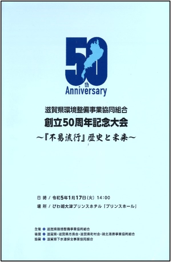 今後、次世代を担う者たちが先人の築き上げた半世紀の歴史を振り返り、更なる発展のために諸制度の進展や技術革新に対応した知識、技術の修得に努め、行政との協力関係をより深め、「湖国滋賀」の環境を守っていくことを目的としてこの記念大会を開催します。 - 主催